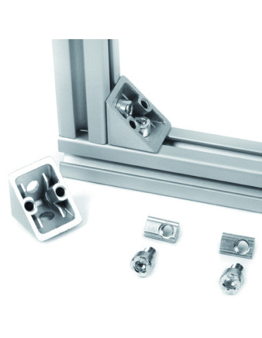 Kątowniki 20x20 do profili aluminiowych, to podstawowy element montażowy wykorzystywany do szybkiego i trwałego łączenia profili aluminiowych pod kątem 90°. Dzięki swojej solidnej konstrukcji wykonanej z ciśnieniowego odlewu aluminiowego, kątowniki zapewniają wysoką stabilność i wytrzymałość mechaniczną, a także estetyczne i profesjonalne wykończenie połączeń. Dzięki zastosowanym wypustom, które są dopasowane do szerokości rowka profilu, uzyskujemy zabezpieczenie przed skręcaniem połączonych profili. Połączenie za pomocą kątownika, umożliwia również szybką i płynną regulację na całej długości rowka profilu. Kątowniki idealnie sprawdzają się w budowie ram wsporczych, stanowisk roboczych, konstrukcji maszyn, osłon bezpieczeństwa oraz ogrodzeń przemysłowych. Prosty i szybki montaż bez konieczności dodatkowych obróbek, zapewnia efektywną realizację projektów konstrukcyjnych, a jednocześnie wysoką estetykę i trwałość konstrukcji.