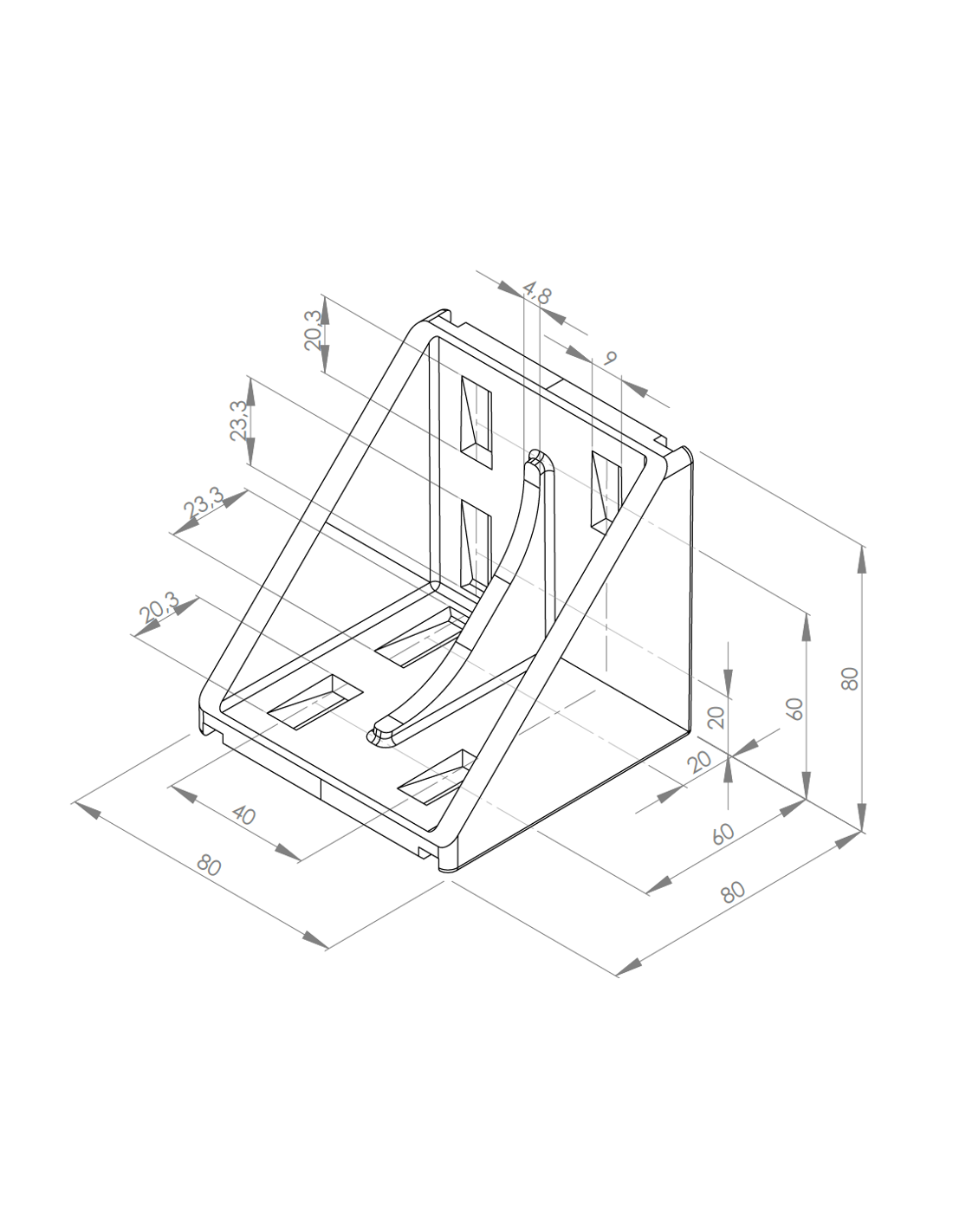 Kątowniki 80x80 do profili aluminiowych, to podstawowy element montażowy wykorzystywany do szybkiego i trwałego łączenia profili aluminiowych pod kątem 90°. Dzięki swojej solidnej konstrukcji wykonanej z ciśnieniowego odlewu aluminiowego, kątowniki zapewniają wysoką stabilność i wytrzymałość mechaniczną, a także estetyczne i profesjonalne wykończenie połączeń. Dzięki zastosowanym wypustom, które są dopasowane do szerokości rowka profilu, uzyskujemy zabezpieczenie przed skręcaniem połączonych profili. Połączenie za pomocą kątownika, umożliwia również szybką i płynną regulację na całej długości rowka profilu. Kątowniki idealnie sprawdzają się w budowie ram wsporczych, stanowisk roboczych, konstrukcji maszyn, osłon bezpieczeństwa oraz ogrodzeń przemysłowych. Prosty i szybki montaż bez konieczności dodatkowych obróbek, zapewnia efektywną realizację projektów konstrukcyjnych, a jednocześnie wysoką estetykę i trwałość konstrukcji.