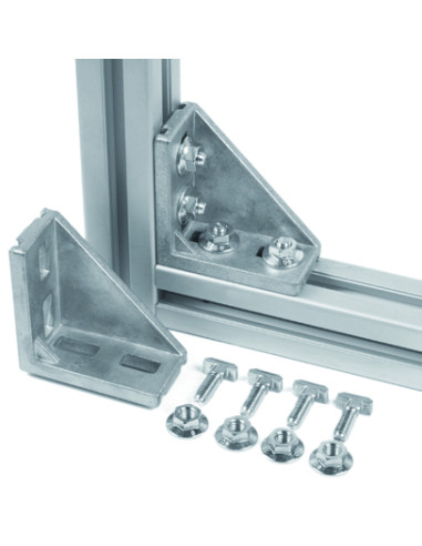 Kątowniki 40x80 do profili aluminiowych, to podstawowy element montażowy wykorzystywany do szybkiego i trwałego łączenia profili aluminiowych pod kątem 90°. Dzięki swojej solidnej konstrukcji wykonanej z ciśnieniowego odlewu aluminiowego, kątowniki zapewniają wysoką stabilność i wytrzymałość mechaniczną, a także estetyczne i profesjonalne wykończenie połączeń. Dzięki zastosowanym wypustom, które są dopasowane do szerokości rowka profilu, uzyskujemy zabezpieczenie przed skręcaniem połączonych profili. Połączenie za pomocą kątownika, umożliwia również szybką i płynną regulację na całej długości rowka profilu. Kątowniki idealnie sprawdzają się w budowie ram wsporczych, stanowisk roboczych, konstrukcji maszyn, osłon bezpieczeństwa oraz ogrodzeń przemysłowych. Prosty i szybki montaż bez konieczności dodatkowych obróbek, zapewnia efektywną realizację projektów konstrukcyjnych, a jednocześnie wysoką estetykę i trwałość konstrukcji.
