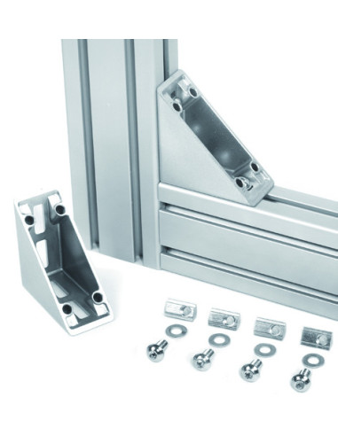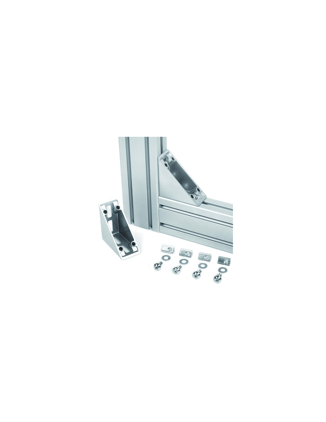 Kątowniki 40x80 do profili aluminiowych, to podstawowy element montażowy wykorzystywany do szybkiego i trwałego łączenia profili aluminiowych pod kątem 90°. Dzięki swojej solidnej konstrukcji wykonanej z ciśnieniowego odlewu aluminiowego, kątowniki zapewniają wysoką stabilność i wytrzymałość mechaniczną, a także estetyczne i profesjonalne wykończenie połączeń. Dzięki zastosowanym wypustom, które są dopasowane do szerokości rowka profilu, uzyskujemy zabezpieczenie przed skręcaniem połączonych profili. Połączenie za pomocą kątownika, umożliwia również szybką i płynną regulację na całej długości rowka profilu. Kątowniki idealnie sprawdzają się w budowie ram wsporczych, stanowisk roboczych, konstrukcji maszyn, osłon bezpieczeństwa oraz ogrodzeń przemysłowych. Prosty i szybki montaż bez konieczności dodatkowych obróbek, zapewnia efektywną realizację projektów konstrukcyjnych, a jednocześnie wysoką estetykę i trwałość konstrukcji.