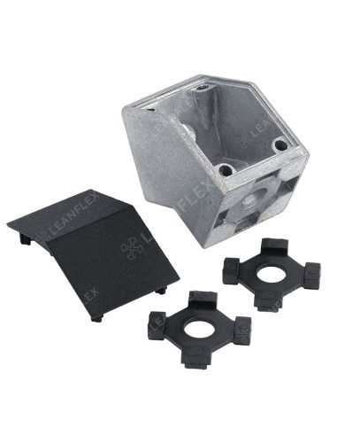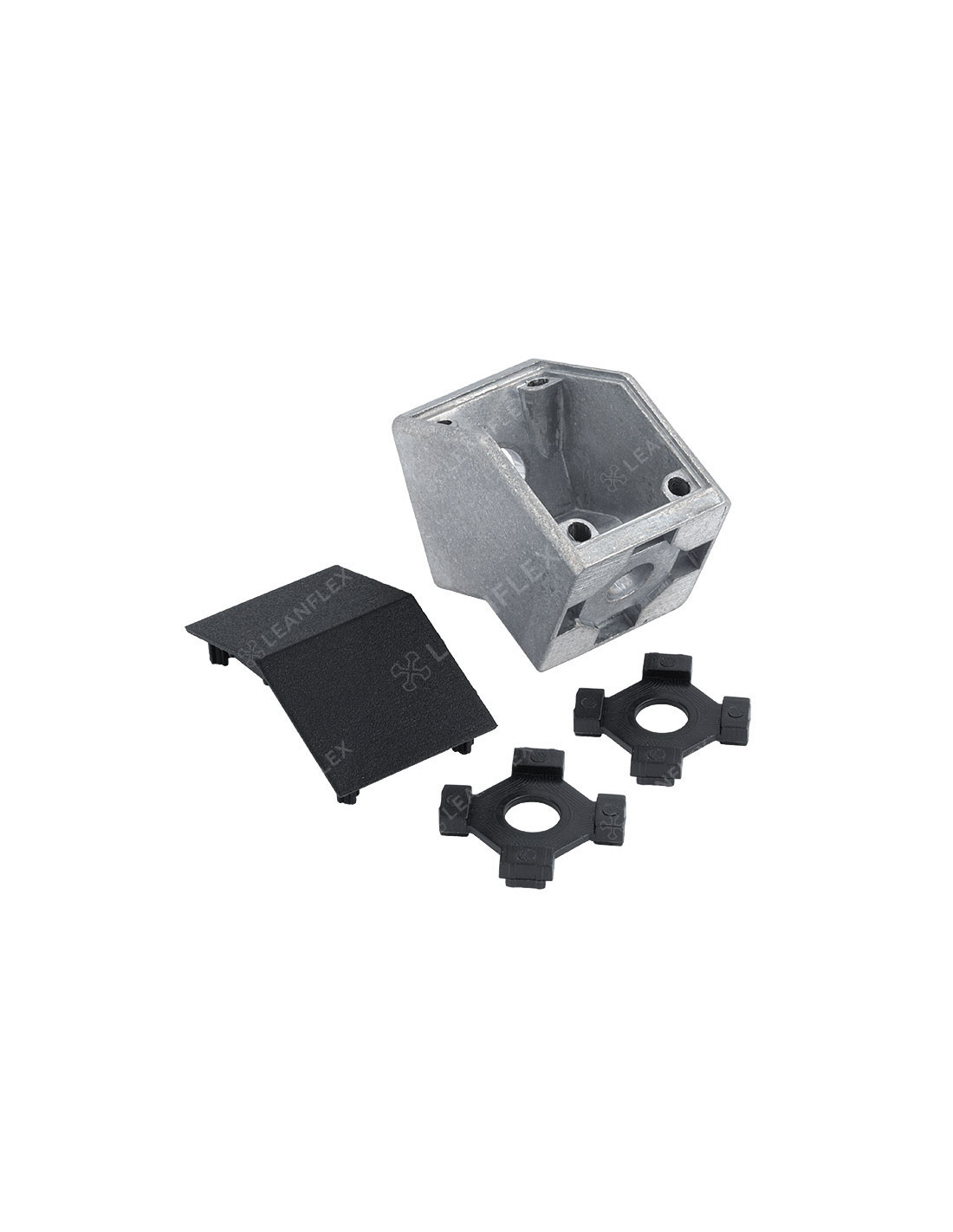 W zestawie znajduje się zaślepka, która skutecznie chroni wnętrze łącznika przed zabrudzeniami, a przy tym poprawia estetykę wykonanego połączenia. Aby prawidłowo zamontować łącznik, profile należy przyciąć pod kątem 90°. Montaż jest szybki, prosty i nie wymaga specjalistycznych narzędzi, co znacząco przyspiesza proces montażu. Produkt znajduje zastosowanie m.in. w zabudowach pojazdów, budowie stanowisk roboczych, osłonach technicznych oraz innych projektach wymagających precyzyjnego łączenia profili pod kątem 45°.