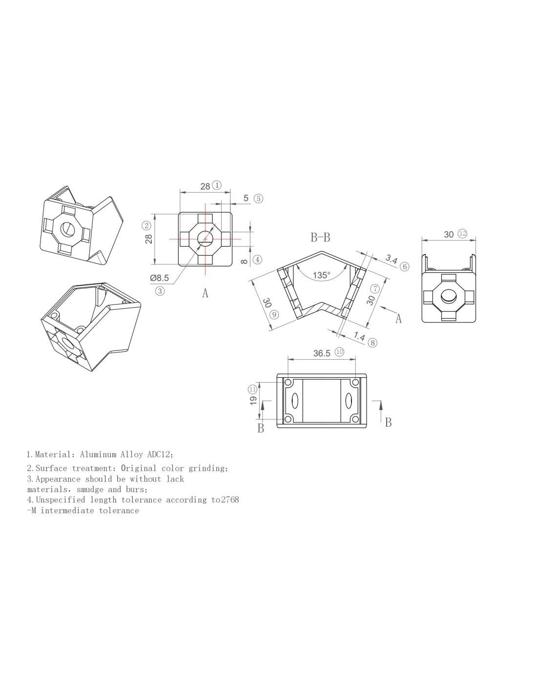 Łącznik kątowy30x30 serii LB oraz serii LI, to funkcjonalny element konstrukcyjny przeznaczony do solidnego i precyzyjnego łączenia dwóch profili aluminiowych pod kątem 45°. Wykonany z lekkiego, a jednocześnie wytrzymałego aluminium, zapewnia wysoką sztywność oraz stabilność całej konstrukcji.