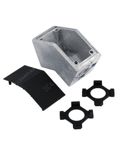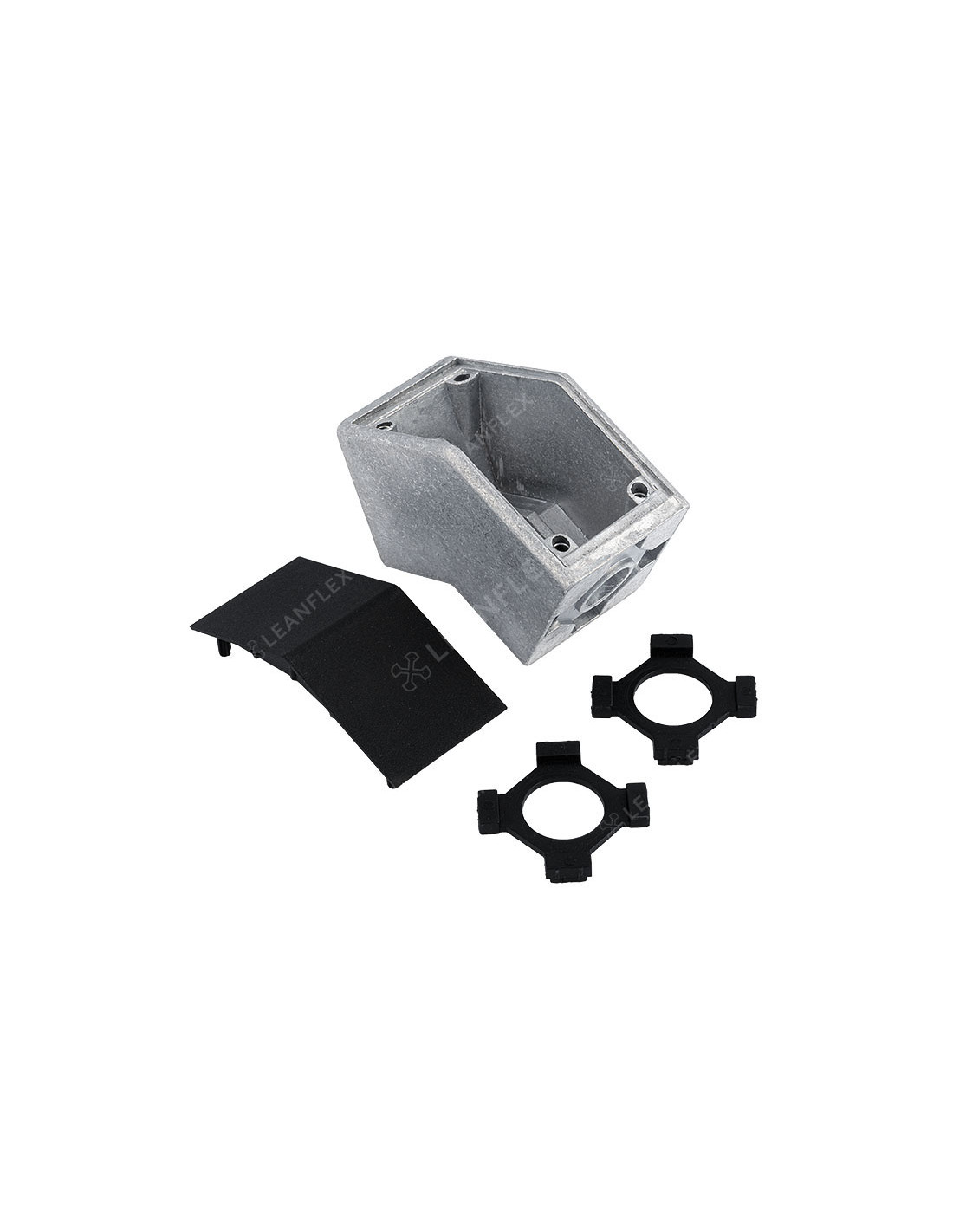 W zestawie znajduje się zaślepka, która skutecznie chroni wnętrze łącznika przed zabrudzeniami, a przy tym poprawia estetykę wykonanego połączenia. Aby prawidłowo zamontować łącznik, profile należy przyciąć pod kątem 90°. Montaż jest szybki, prosty i nie wymaga specjalistycznych narzędzi, co znacząco przyspiesza proces montażu. Produkt znajduje zastosowanie m.in. w zabudowach pojazdów, budowie stanowisk roboczych, osłonach technicznych oraz innych projektach wymagających precyzyjnego łączenia profili pod kątem 45°.