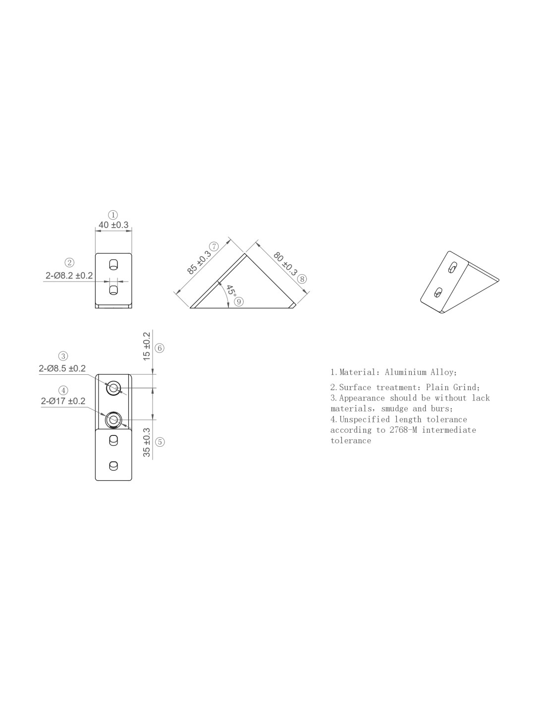 Łącznik kątowy 40x80 45º