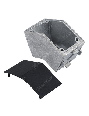W zestawie znajduje się zaślepka, która skutecznie chroni wnętrze łącznika przed zabrudzeniami, a przy tym poprawia estetykę wykonanego połączenia. Aby prawidłowo zamontować łącznik, profile należy przyciąć pod kątem 90°. Montaż jest szybki, prosty i nie wymaga specjalistycznych narzędzi, co znacząco przyspiesza proces montażu. Produkt znajduje zastosowanie m.in. w zabudowach pojazdów, budowie stanowisk roboczych, osłonach technicznych oraz innych projektach wymagających precyzyjnego łączenia profili pod kątem 45°.