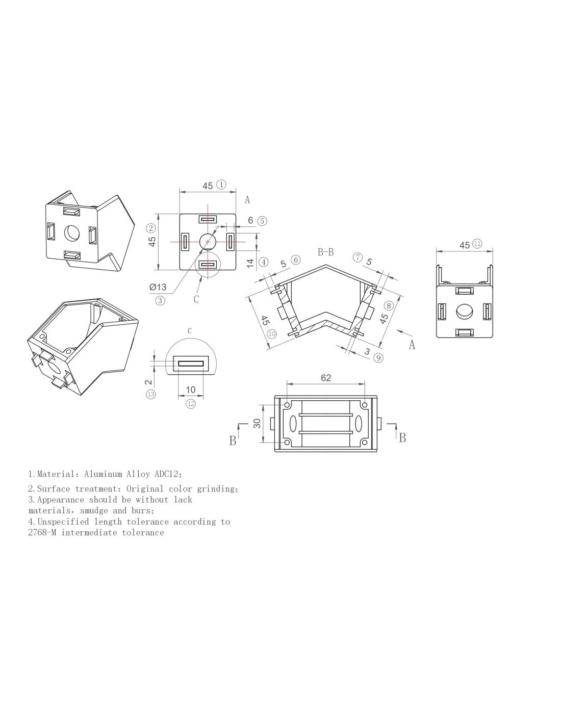 Łącznik kątowy 45x45 serii LB, to funkcjonalny element konstrukcyjny przeznaczony do solidnego i precyzyjnego łączenia dwóch profili aluminiowych pod kątem 45°. Wykonany z lekkiego, a jednocześnie wytrzymałego aluminium, zapewnia wysoką sztywność oraz stabilność całej konstrukcji.
