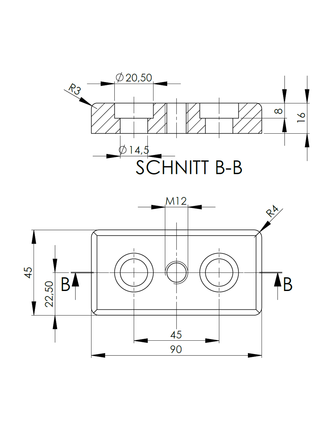 Płyta mocująca 45x90 M16