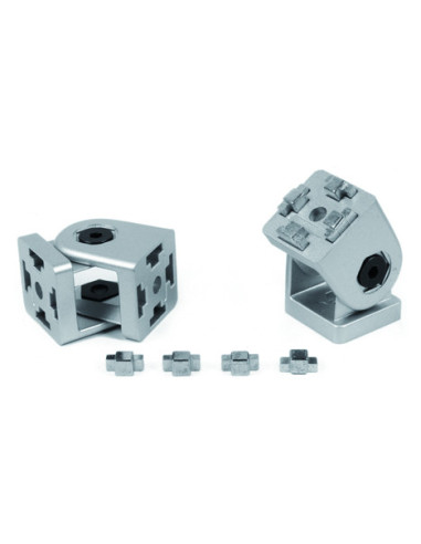 Przegub do profili aluminiowych serii LB i LI o przekroju 40x40, umożliwia ruchome lub stałe łączenie dwóch profili pod dowolnym kątem w zakresie do 180°. Brak dźwigni zaciskowej oznacza, że regulacja odbywa się za pomocą klucza imbusowego, co zapewnia trwałość i stabilność połączenia. Stosowany m.in. w konstrukcjach maszyn, osłonach czy zabudowach pojazdów.