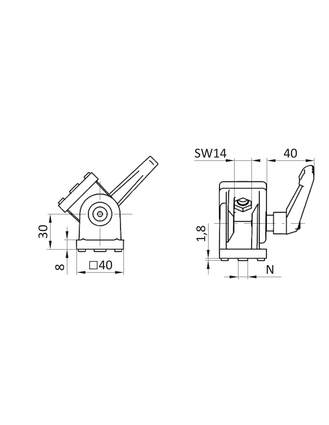 Przegub 40x40 bez dźwigni zaciskowej [10]