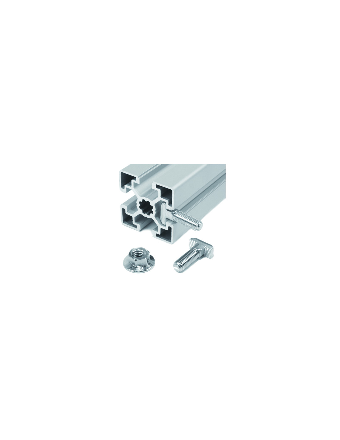 Śruba młoteczkowa M8x25 z nakrętką kołnierzową M8 do rowka 10mm, to element montażowy powszechnie stosowany w systemach profili aluminiowych Leanflex. Jej charakterystyczną cechą jest łeb w kształcie młoteczka, który umożliwia wsunięcie jej bezpośrednio w rowek profilu aluminiowego lub wprowadzenie od góry. W momencie dokręcania, łeb śruby obraca się o 90 stopni i klinuje się w rowku profilu podczas dokręcania, co zapewnia stabilne i pewne mocowanie bez konieczności wiercenia. Nakrętka kołnierzowa, będąca uzupełnieniem śruby, zwiększa powierzchnię docisku i zapobiega luzowaniu się połączenia. Zestaw ten stosowany jest m.in. do montażu wsporników, kątowników i innych elementów konstrukcyjnych.Zestaw może być stosowany m.in. do kątowników Leanflex 40x40, 40x80, 80x80, 45x45, 45x90, 90x90 serii LB