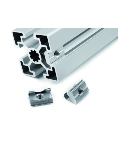 Wpust rowkowy ze sprężyną M5 do rowka 10mm, to funkcjonalny element montażowy stosowany w konstrukcjach opartych na profilach aluminiowych Leanflex. Zintegrowana sprężyna utrzymuje wpust w rowku i zapobiega samoczynnemu przesuwaniu, co znacznie ułatwia montaż zwłaszcza w trudno dostępnych miejscach lub podczas pracy w pionie. Jego zaletą jest możliwość włożenia go od góry, bez konieczności wsuwania od czoła profilu, co pozwala na łatwą instalację także w gotowych konstrukcjach. Wpusty wykonane są z ocynkowanej stali, która gwarantuje wysoką odporność na korozję oraz trwałość, nawet w trudnych warunkach eksploatacyjnych.