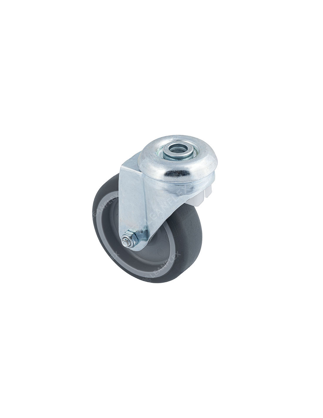 Koło o średnicy 100mm z otworem montażowym bez hamulca, to praktyczny element przeznaczony do konstrukcji wykonanych z profili aluminiowych. Dzięki standardowemu otworowi mocującemu, koło łatwo i pewnie montuje się bezpośrednio w rdzeniu profilu, zapewniając stabilność i wytrzymałość połączenia. Idealnie sprawdza się w różnego rodzaju wózkach transportowych, stołach warsztatowych czy mobilnych ramach, umożliwiając łatwe przemieszczanie ciężkich elementów i konstrukcji.