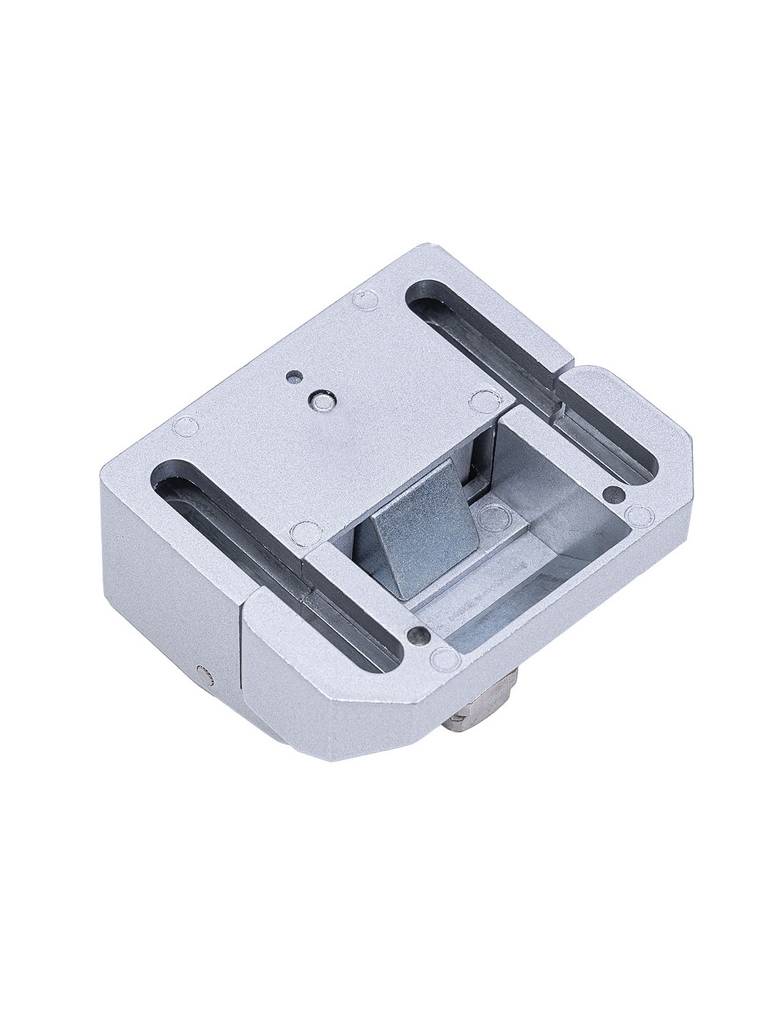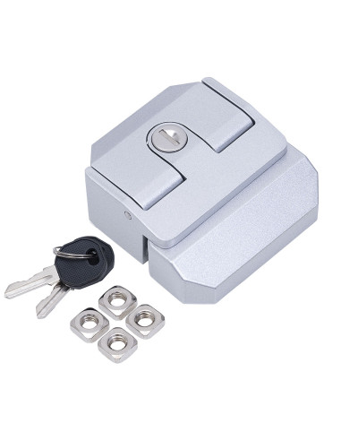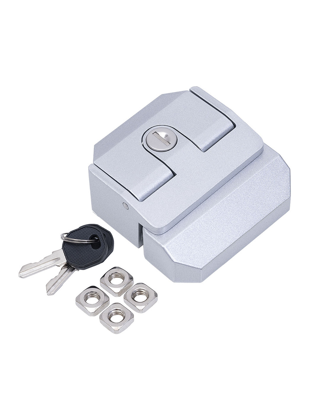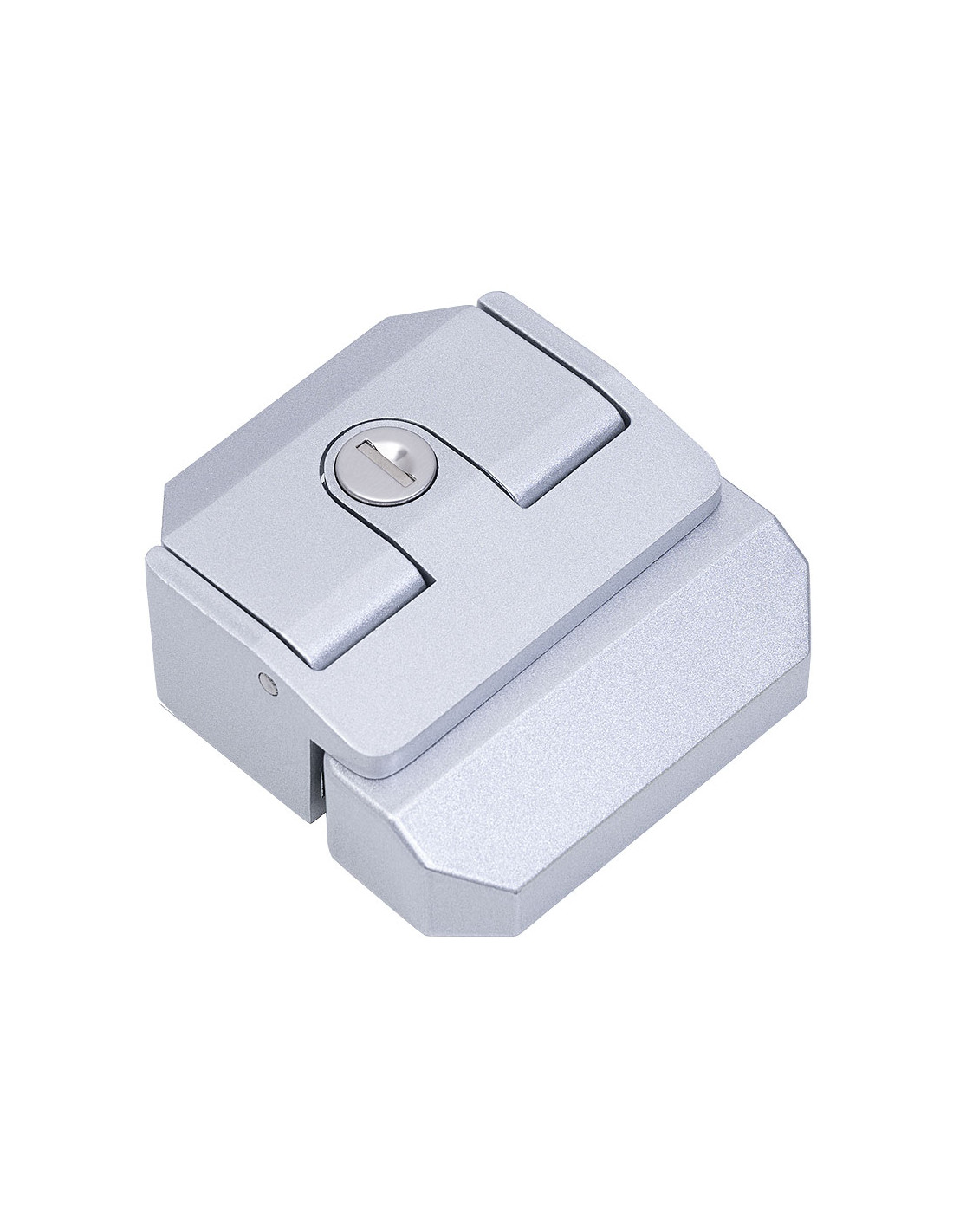 Zamek drzwiowy w kolorze srebrnym, stosowany w konstrukcjach z profili aluminiowych serii LB oraz serii LI. Posiada klucze, co pozwala zabezpieczyć strefy przed dostępem osób nieupoważnionych. Wykonany z odlewu cynkowego malowany proszkowo, łączy trwałość z eleganckim wyglądem.